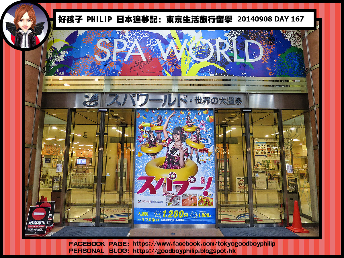 東京生活 DAY 167 好孩子Philip日本留學旅行 AKB48 長編遊記 20140908 大阪篇: (4) Spa World 過夜在六甲山搭最後一班纜車下山,再由三ノ官回去大阪。今晚決定在 NMB48 代言的 Spa World 過夜,在惠須美町下車找東西吃,不過晚上十時多,日本橋附近的食店除了松屋吉野家等選擇不多,於是行過去新世界吃炸物吧!那邊有很多通宵食店的!